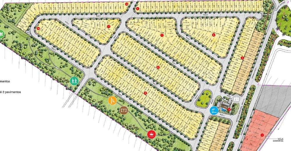 Lotes a partir de 250 m² a 1.100 m². Possui 285 lotes residenciais, são mais de 40.000m² de área verde, portaria 24 horas.