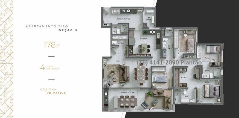 - Área Privativa: 178 m²