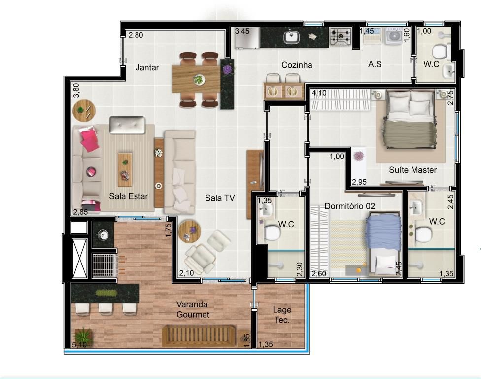 - Área Privativa: 90 m²