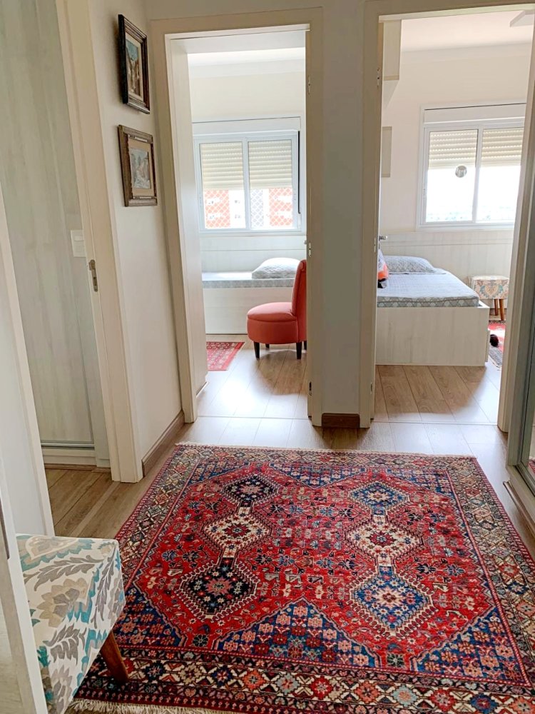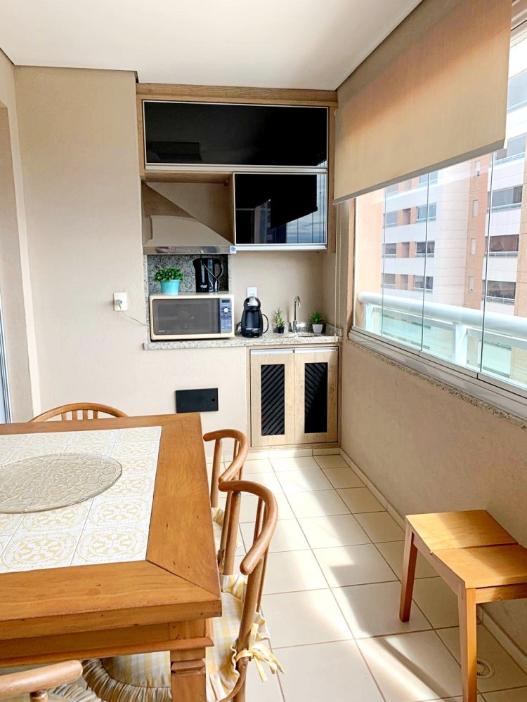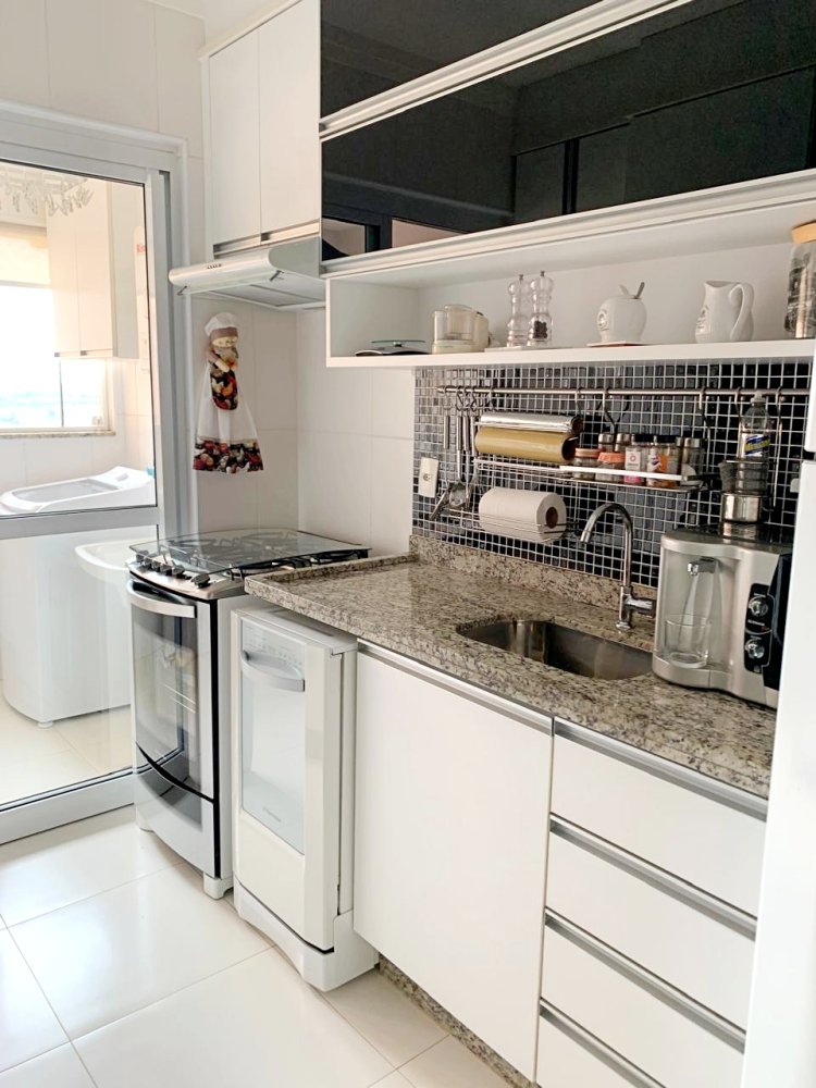 •Piso em porcelanato na cozinha e carpete de madeira nas áreas sociais