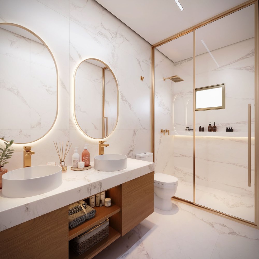 •Banheiros com 100% de revestimento