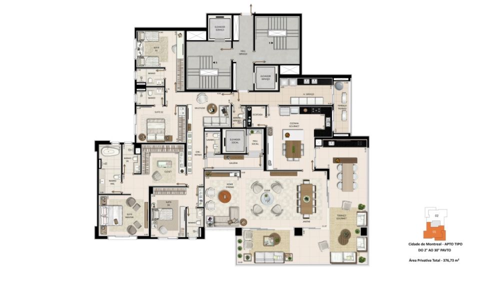 - Área Privativa: 376 m²